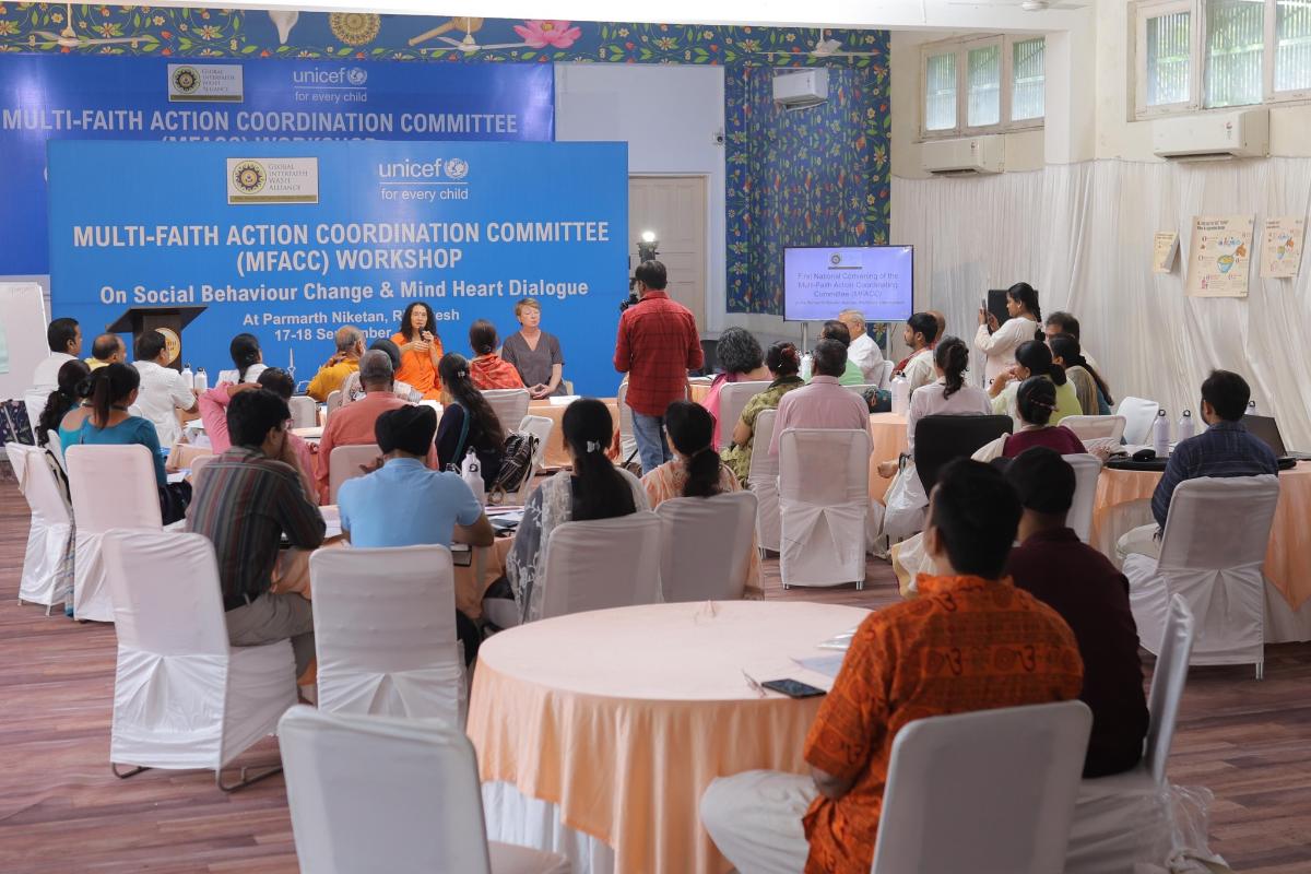 The Global Interfaith WASH Alliance (GIWA) convened a two-day Multi-Faith Action Coordination Committee (MFACC) Workshop at Parmarth Niketan in the presence of Pujya Swami Chidanand Saraswatiji, Pujya Sadhvi Bhagawati Saraswatiji, representatives from UNICEF India, and more than a dozen diverse faith-based organizations.